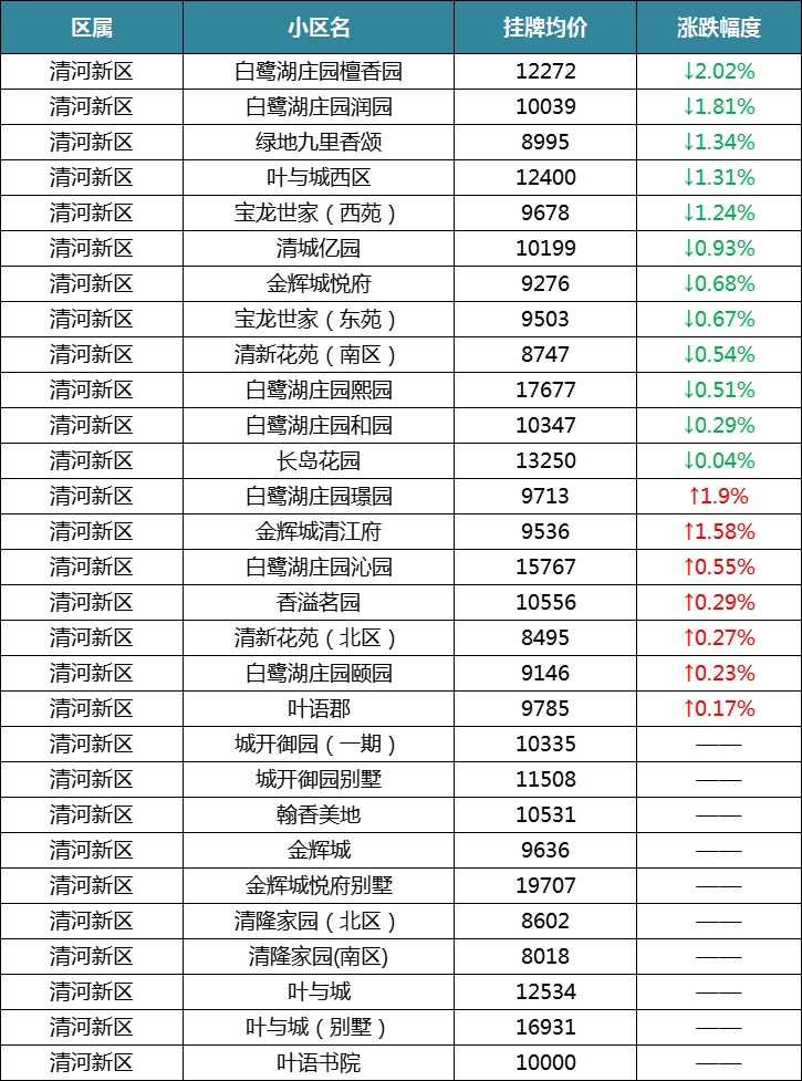 不得不说,清河新区这两个月挂价上涨的小区上涨了不少,本月有7个小区涨幅,最高的白鹭湖璟园涨幅为1.9%。