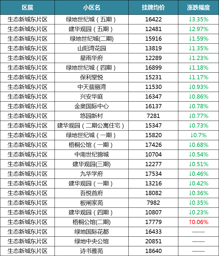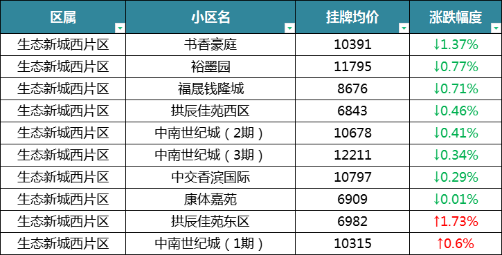 不过房价却一直在跌,挂价上涨的屈指可数,东片区一个,西片区两个。