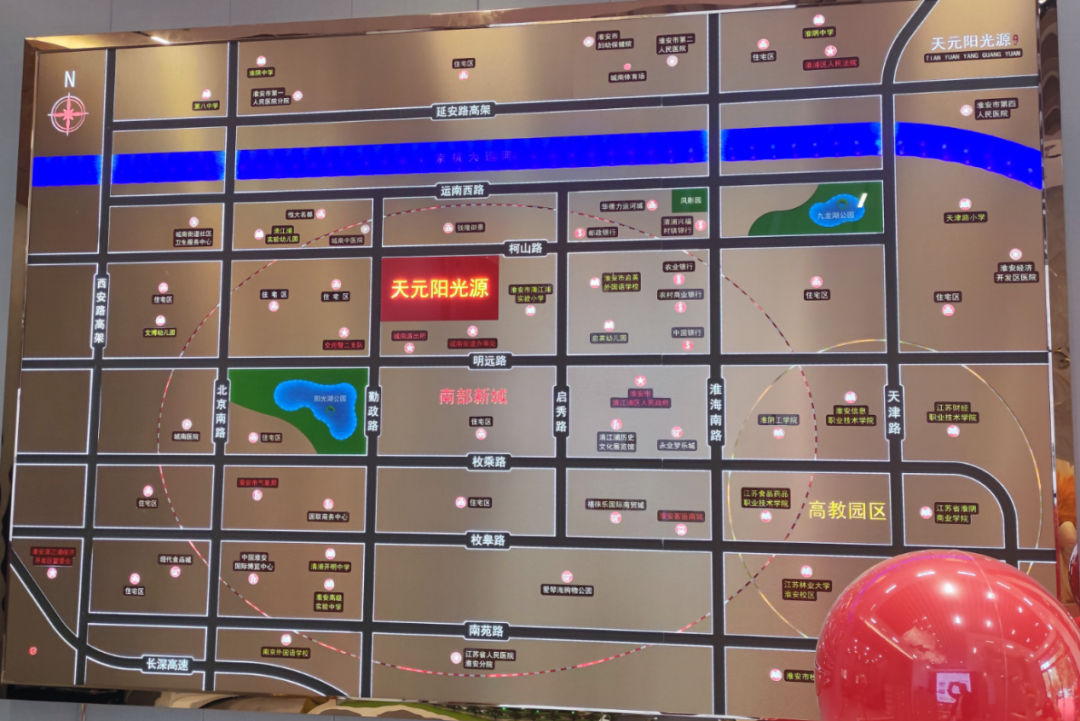 天元阳光源小区项目西临政通路,北临柯山路,东临清江浦实验小学,南临文化路。项目占地约1.62万方,规划建筑面积约7.876万方。项目建有3栋高层和1栋小高层住宅楼,一幢2层的8730方商业超市。