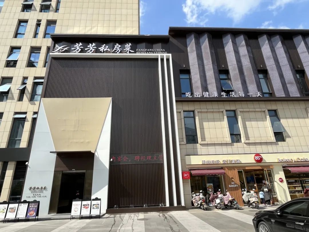 再往北侧,分别是芳芳私房菜和85℃蛋糕店。