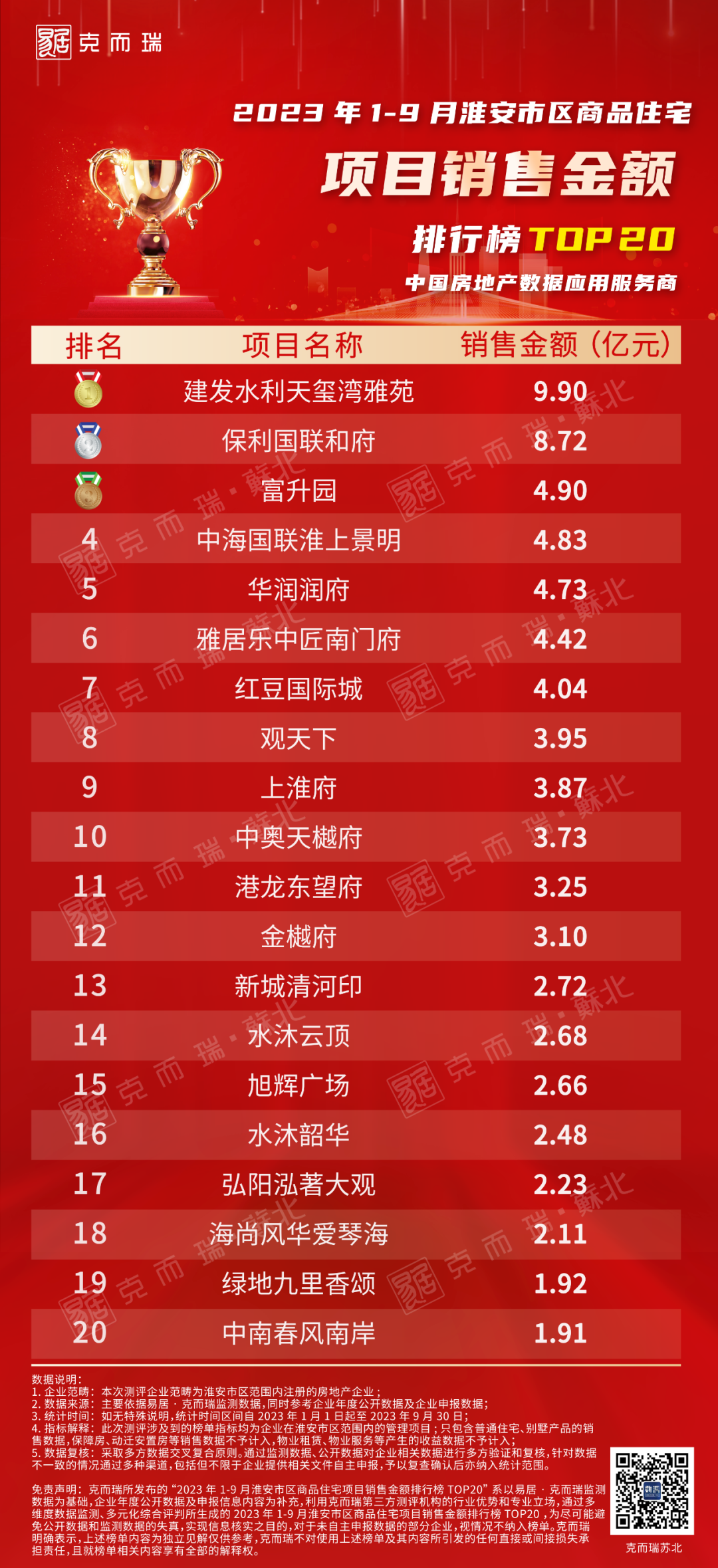 据克尔瑞数据显示,1-9月,建发|水利·天玺湾雅苑销额9.9亿元,遥遥领先与主城其他楼盘。