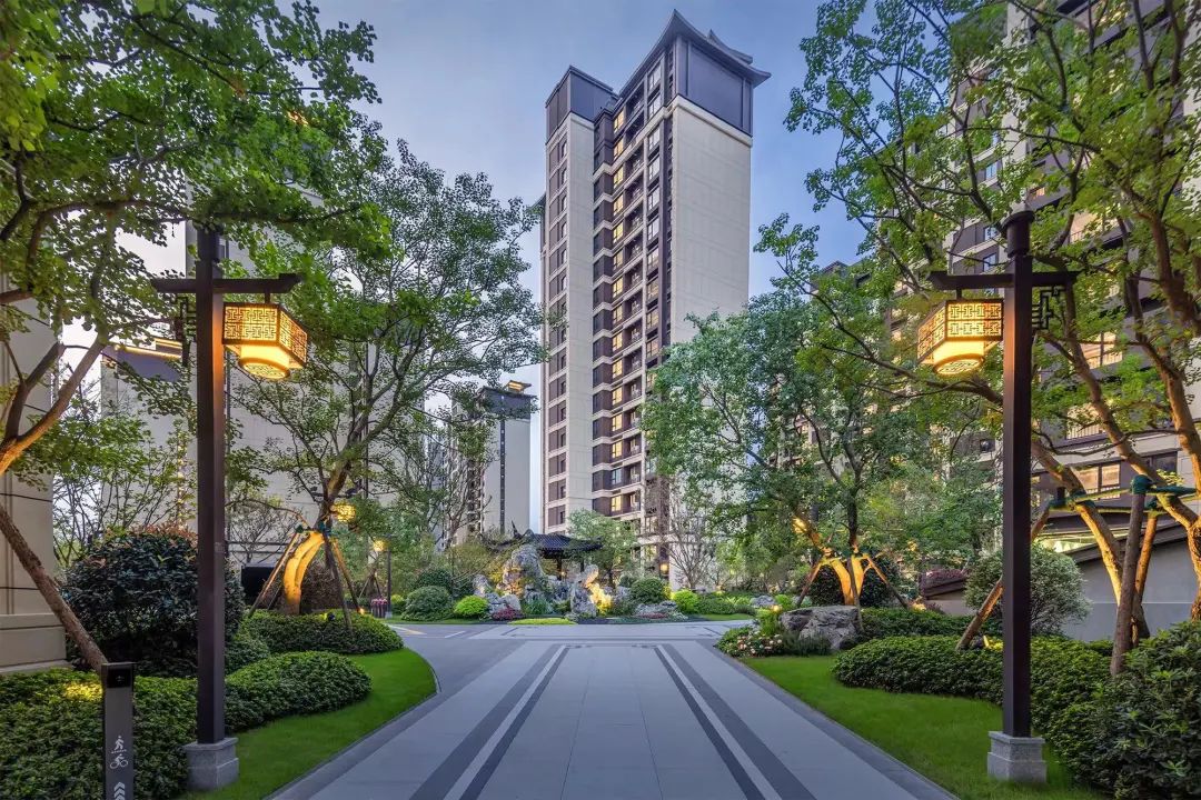 除了深刻的“新中式”印记外,建发|水利·天玺湾超预期的实景,品质感还体现在,层次感十足的绿化和细节满满的设计中。
