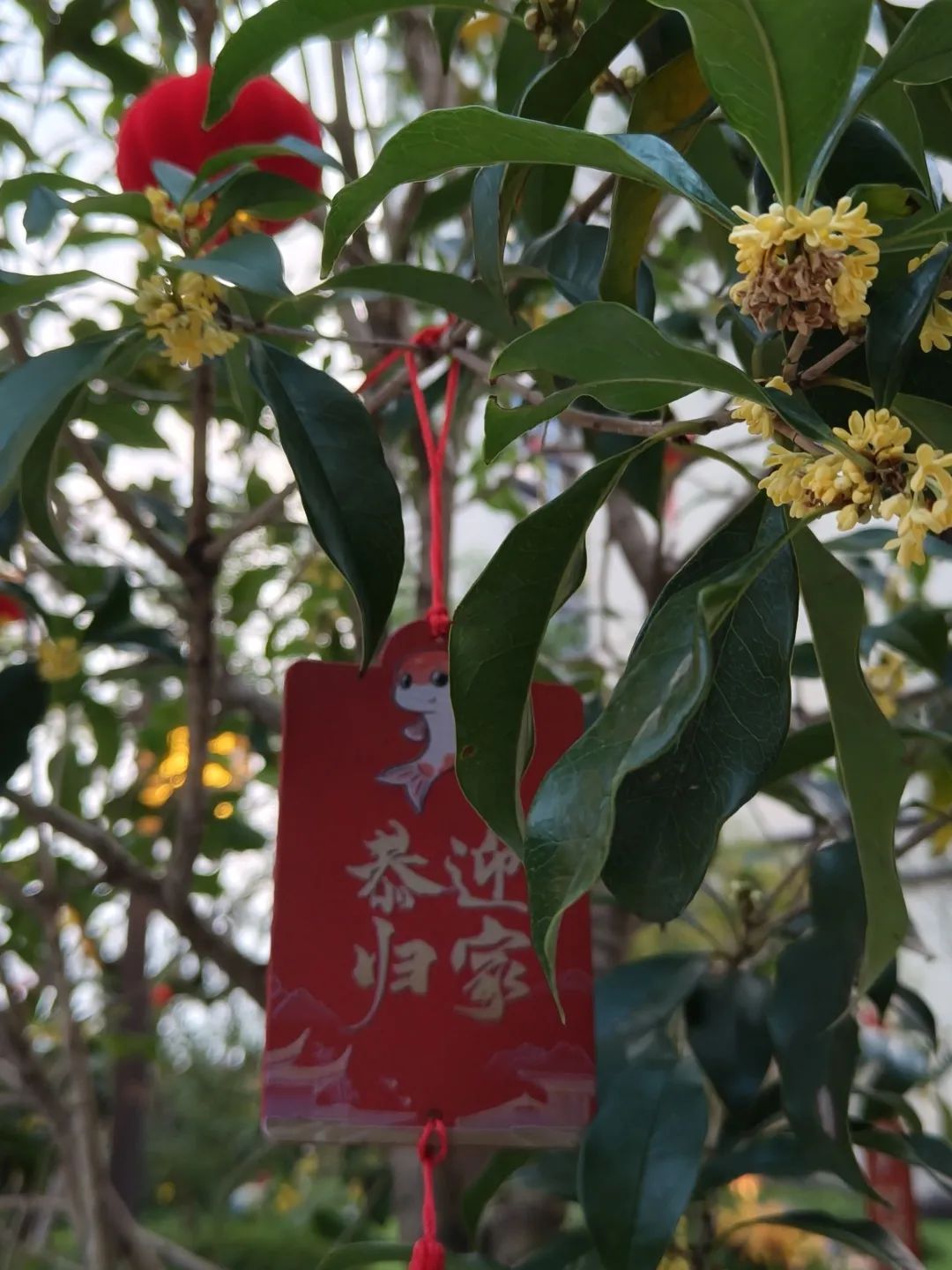 园区主入口的牌匾上的红绸,绿植上火红的小灯笼、贴心的“欢迎回家”牌、单元入户门牌上的红绸,都是建发给到业主们的欢迎仪式……