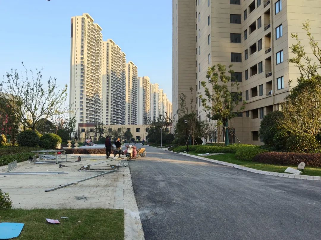 据实探,如今雨润星雨华府尚未交付楼栋及部分公共绿化、道路工程已经在做最后的收尾工作。