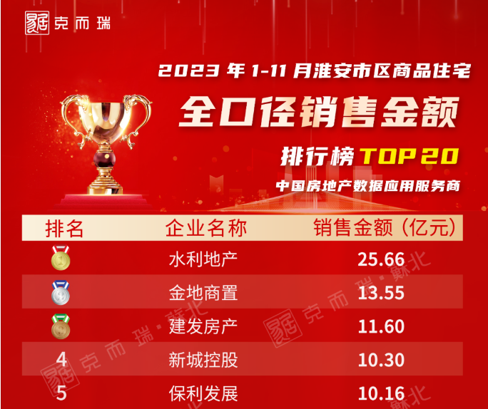全口径销售金额前5名中,top1的水利地产销售金额25.66亿元,比top2和top3的总和还多。