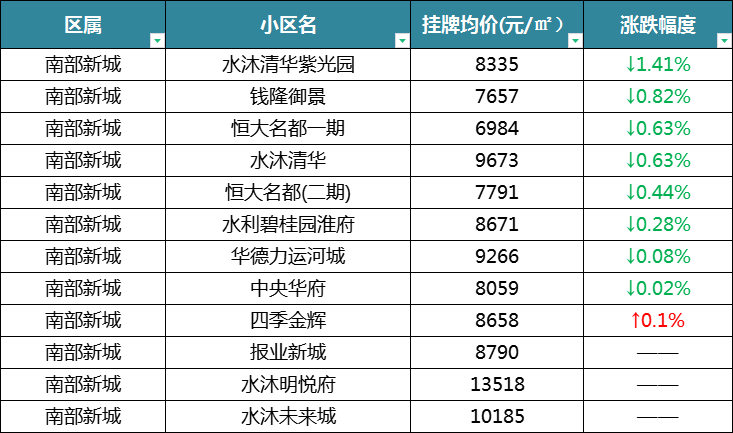 华城小区39078元/㎡,↓0.48%;