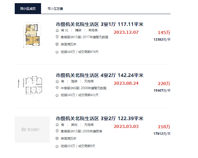 笔者从贝壳平台发现,近日市级机关北院生活区一套一附小的学区房,建筑面积117.11㎡,成交总价145万,单价仅1.2万+/㎡。