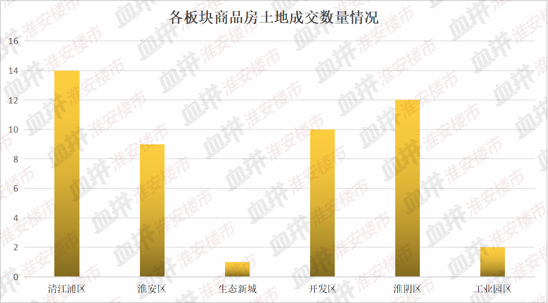 而2023年供应的商品房宅地分区域看:供应量最大的仍然是清江浦区,一年共计摘牌14宗;另外淮阴区、开发区的供应量则分别位列第二、第三名。