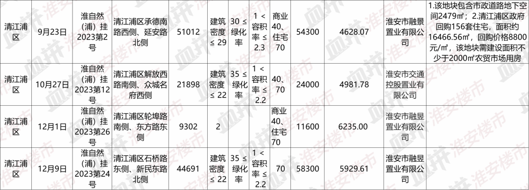 而2023年淮安主城土地市场中,还有一个亮眼的现象。