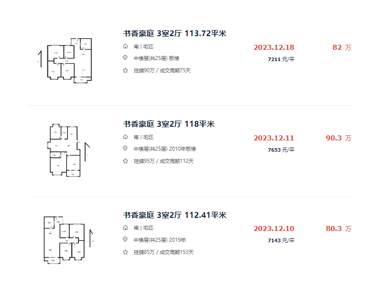 事实上,12月该小区成交的几套二手房源,几乎都仅有7字头。