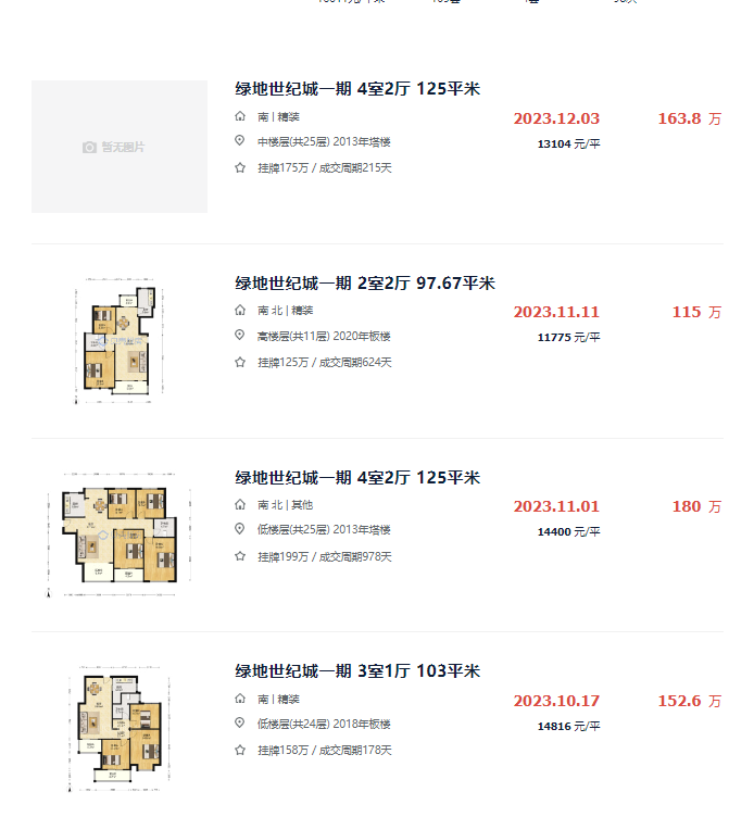 要知道,目前绿地世纪城1期的二手房成交均价普遍在一万四、五的价格区间。