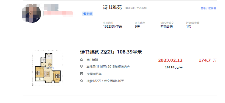 其中,诗书雅苑的小区流通性一般,无论是挂牌量还是成交量几乎都很少。