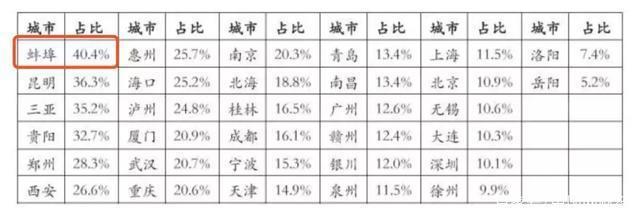 值得一提的是,在本次报告选取的32个城市中,上半年,蚌埠房地产开发投资占GDP比重高达40.4%,经济对房地产依赖度位列第一。