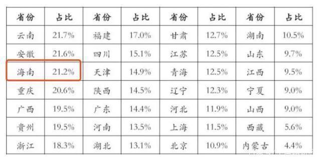 上半年,房地产开发投资占GDP比重排名前三位的省份分别是云南、安徽和海南,占比分别为21.7%、21.6%和21.2%,而海南以往都是高居第一。