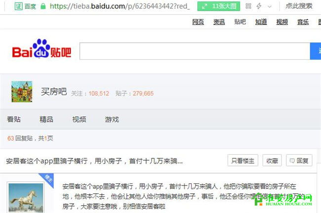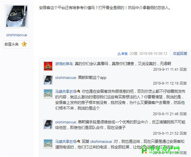 百度贴吧:安居客这个app里骗子横行,用小房子,首付十几万来骗人......