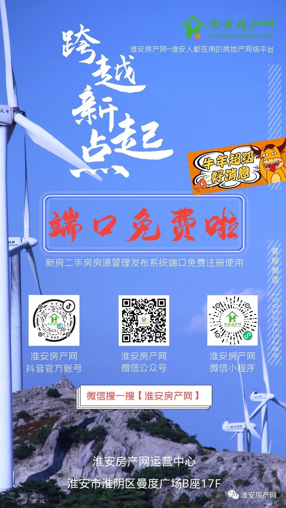 免责声明与重要提示:淮安房产网是淮安地区具有权威性、影响力的房地产网络平台,为淮安人民、房地产开发商与经纪公司提供专业的房产信息、中介、交易、分销平台,为合作伙伴提供全案代理、楼盘分销、渠道总代、营销策划、投融资等一站式解决方案。淮安房产网官方网址huaianhouse.com,谨防假冒!1、淮安房产网根据用户指令提供作品传播服务,向来十分重视网络版权及其他知识产权以及用户权益的保护。2、淮安房产网作为淮安本土通过多个权威性官方机构认证的专业的房产互联网平台,旨在为满足广大用户的信息需求而采集提供,并非商业性或盈利性用途。任何单位或个人认为本网站内容来源标注有误,或涉嫌侵犯其知识产权等相关权利的,请提供身份证明、权属证明及详细侵权情况证明等相关资料,通过【投诉电话】或【邮箱地址】联系我们,我们将及时进行审核处理。投诉电话:0517-89220988 邮箱:3512494088@qq.com;3、本页面所载内容不代表本网站之观点或意见,仅供用户参考和借鉴,最终以国家相关法律法规与开发商实际公示为准。商品房预售须取得《商品房预售许可证》,用户在购房时需慎重查验开发商的证件信息。本页面所提到房屋面积如无特别标示,均指建筑面积;4、除此以外,将本网站任何内容或服务用于其他用途时,须征得本网站及相关权利人的许可,否则本网站依法保留追究权。