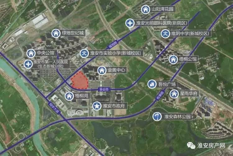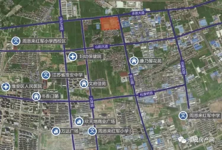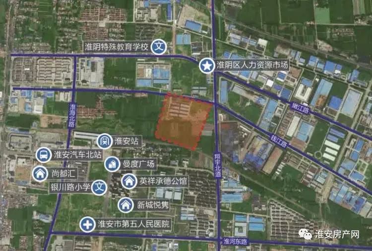 4宗地都在盐河北,盐河北上限价仅为3154/㎡,不过地块靠近淮安汽车北站,交通便利,周边有医疗配套:淮安第五人民医院,和商业配套曼度广场,想来不会发展太差。