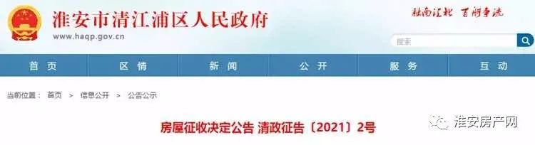 三、征收部门:淮安市清江浦区住房和城乡建设局。