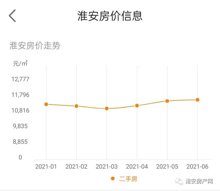 在淮安房价通告中,二手房均价在16616/㎡ ,比上月环比增长0.69%,其中3月最低,6月最高。